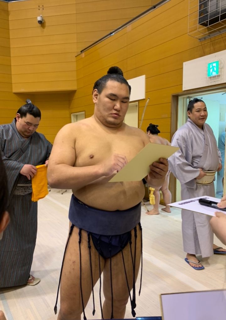 間近で見る力士は、とっても大きくて迫力がありやっぱり生で見ると、テレビで見るより何倍もたくましく見えて本当にかっこいい!!