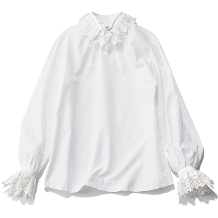 白シャツ感覚でマニッシュに、映え要素をプラスできるレース衿。フェティッシュさが光って、モノトーンも一枚上手な印象に。