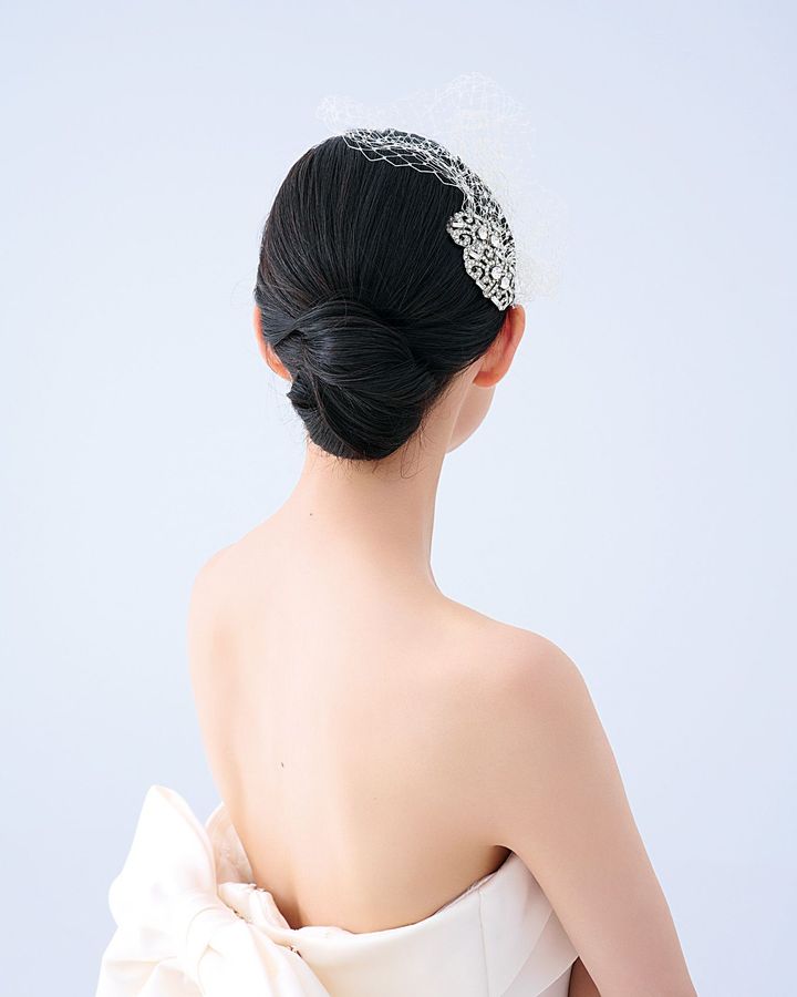 【シニヨンStyle①】タイトにまとめたシニヨンをネットチュールで飾って