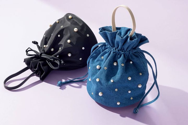 カジュアルコーデをクラスアップできる巾着バッグを発見♡パール&ビジューが華やか