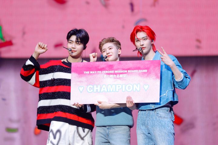 メインステージとセンターステージを繋ぐ花道に巨大なすごろくのマスが登場し、ゲームコーナーへ。ピンクの【ハートゥービーチーム】は、キム・ギュビン、ソン・ハンビン、ジャン・ハオ。ブルーの【エネルギー満タンチーム】はキム・ジウン、キム・テレ、パク・ゴヌク。イエローの【Marry Youチーム】はソク・マシュー、ハン・ユジン、リッキー。この3チームに分かれてゲームがスタート。