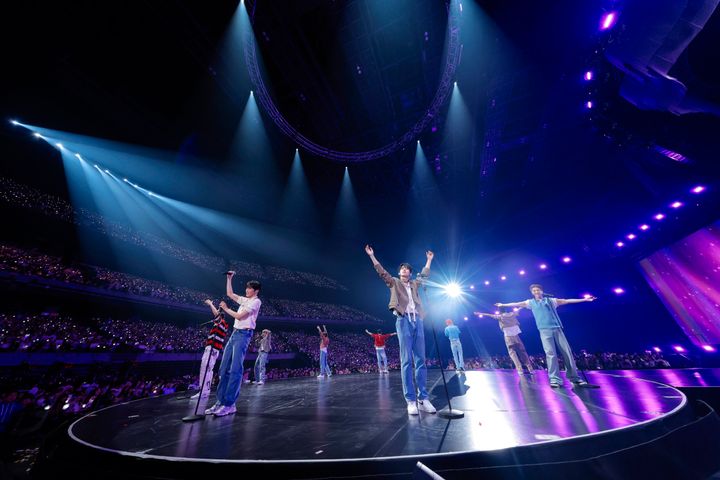 メンバーの個性を表現したVCR映像を挟み、ウォッシュの効いたデニムに白シャツ、爽やかな少年のような衣装に身を包んだメンバーたちが再び登場。「New Kidz on the Block」を披露。