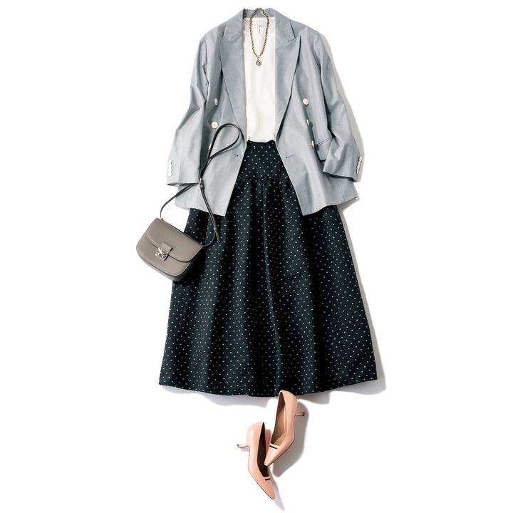 3. ジャケット合わせで甘さを引き算!春のオフィカジコーデ【着回しDiary】