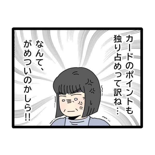 (カードのポイントも独り占めってわけね・・なんてがめついのかしら!!)