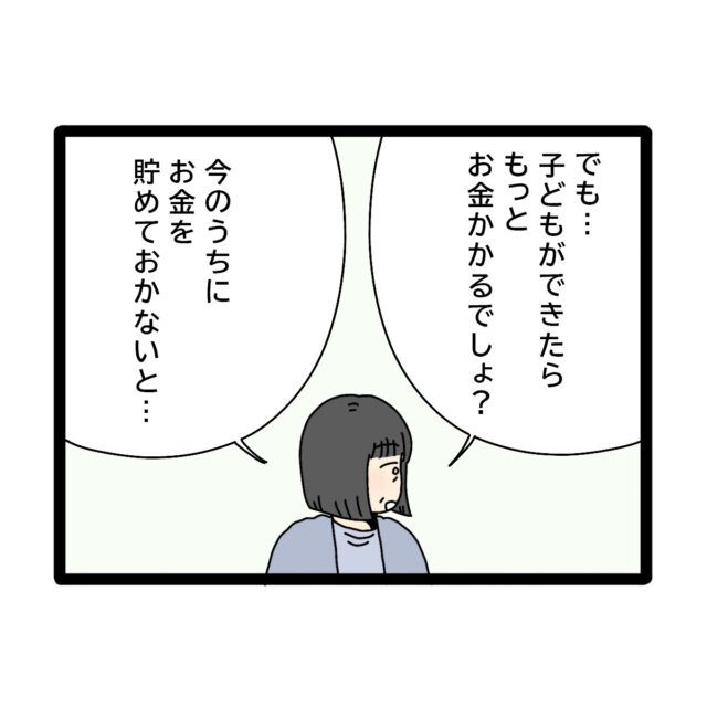 「でも・・子どもができたらもっとお金かかるでしょ?今のうちにお金を貯めておかないと・・」