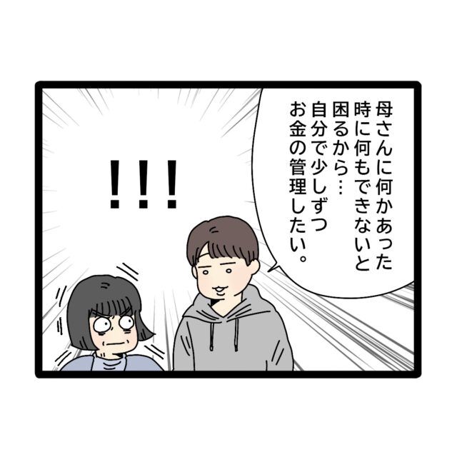 「母さんに何かあった時に何もできないと困るから・・自分で少しずつお金の管理したい」