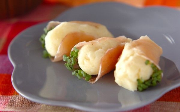 マッシュポテトとスプラウトを生ハムで巻けばOK。生ハムの塩気がマッシュポテトにマッチし、お子様も好きな味わいです。ひと口サイズで食べやすく、ワインやシャンパンともよく合いますよ。