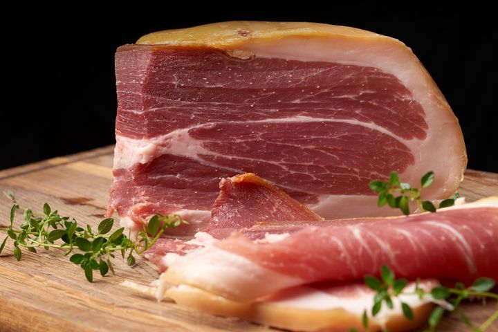 「生ハム」は豚もも肉を塩漬けにし、乾燥・熟成させてから低温燻製した加工肉のことです。やや固めの食感で、燻製特有の香ばしい風味があり、強い塩気を感じます。国や地域によってその製法は異なりますが、燻製するものが大半です。