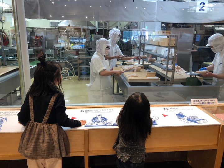 私の大好きな工場見学もできます。ガラス越しに手際のいい職人技を眺めていると時間がたつのも忘れてしまうほど…。