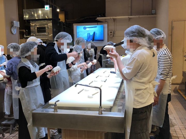 こちらでは実際に職人と一緒にかまぼこやちくわの手づくり体験もできます。魚のすりみを板や竹の棒に付けて、自分だけのオリジナル商品が完成!実際に作ってみることで職人技のすごさを実感しますよね(1人1760円・約50分)。