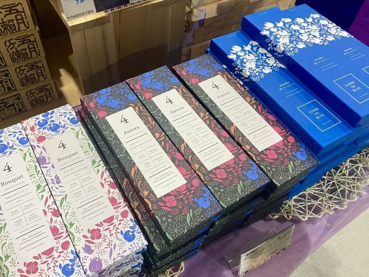 筆者は越前市に2024年2月23日にオープンしたしきぶきぶんミュージアムの「光る越前SHOP」にて購入しました。価格は1,160円(税込)。お店には「CARE・DE・BLUE」の他に4色のチョコレートもありました。こちらも色鮮やかで惹かれます!