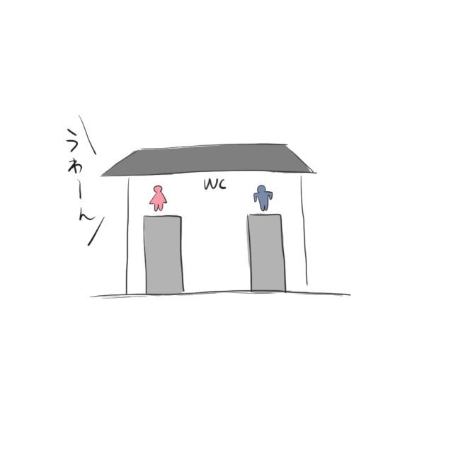 怖くてギャン泣きするこねたんを抱えて出て、他のトイレを探すことに。
