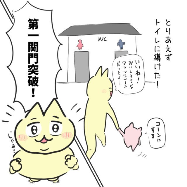ですがこねたんは急にトイレに行きたくなってしまって・・・