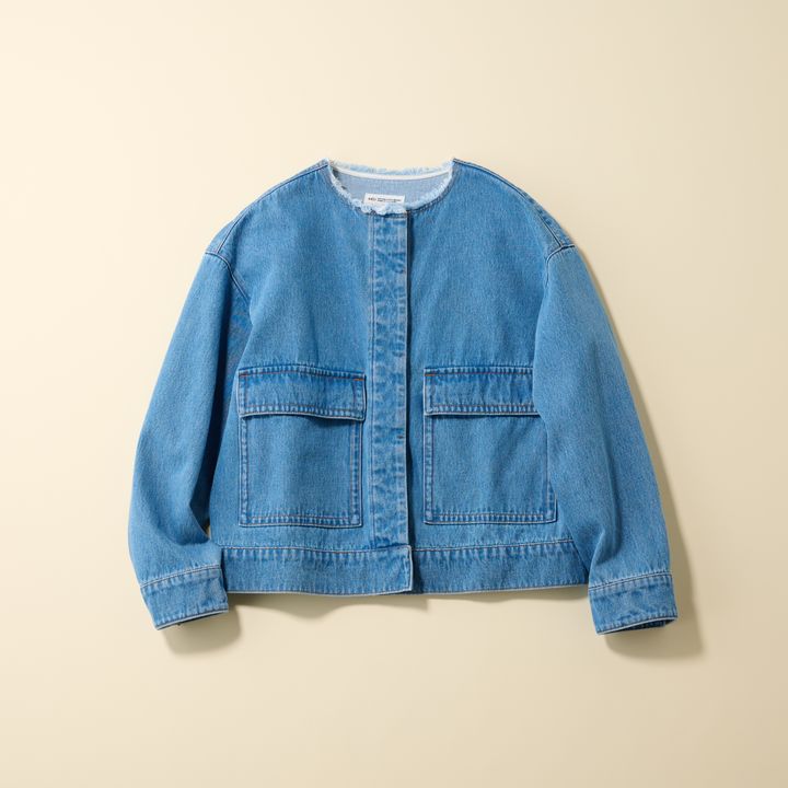 爽やかなブルーカラーで、デニムでもカジュアルになりすぎずクリーンな印象。バックシルエットはさりげなくペプラムになっており、アナイらしい上品な甘さで味付け。コットン100%のデニムだと生地が硬く動きづらいイメージがありますが、このジャケットはコットンのほかにポリなども入っているからストレッチ性があり、屈んだり抱き上げたりと動きやすさもマストなママもストレスフリー。ジャケット¥33,000(ANAYIプレスルーム)