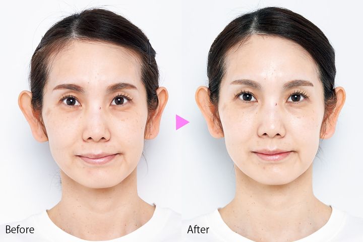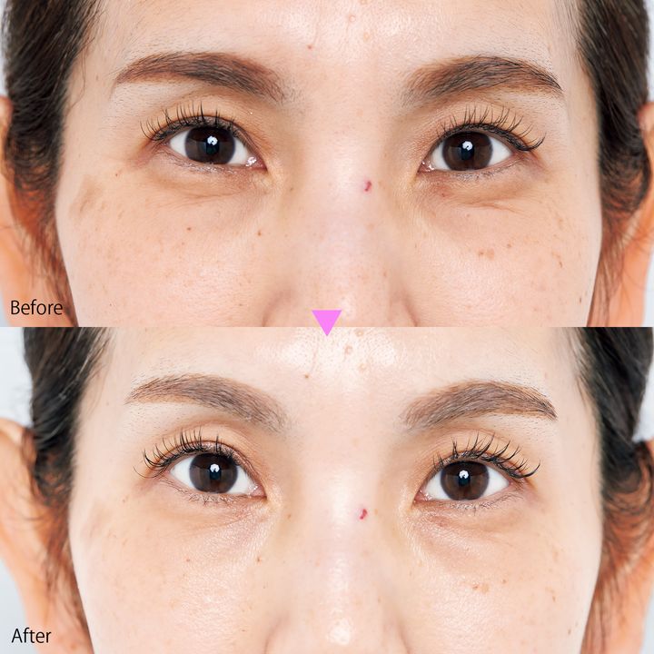 目の周りのくすみが目立たなくなり、トーンアップしたことで透明感が。右こめかみ下のシミも存在が薄くなった。