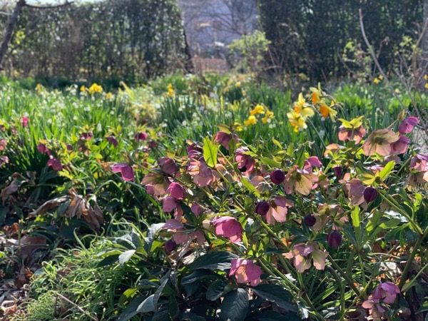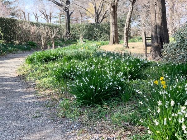 3月後半に訪れた際は、クリスマスローズとスイセンの競演が見事でした。