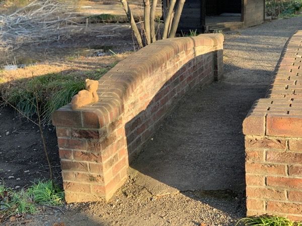 池にかかる橋。クマが寝そべっていますね。こんな遊び心もステキ。