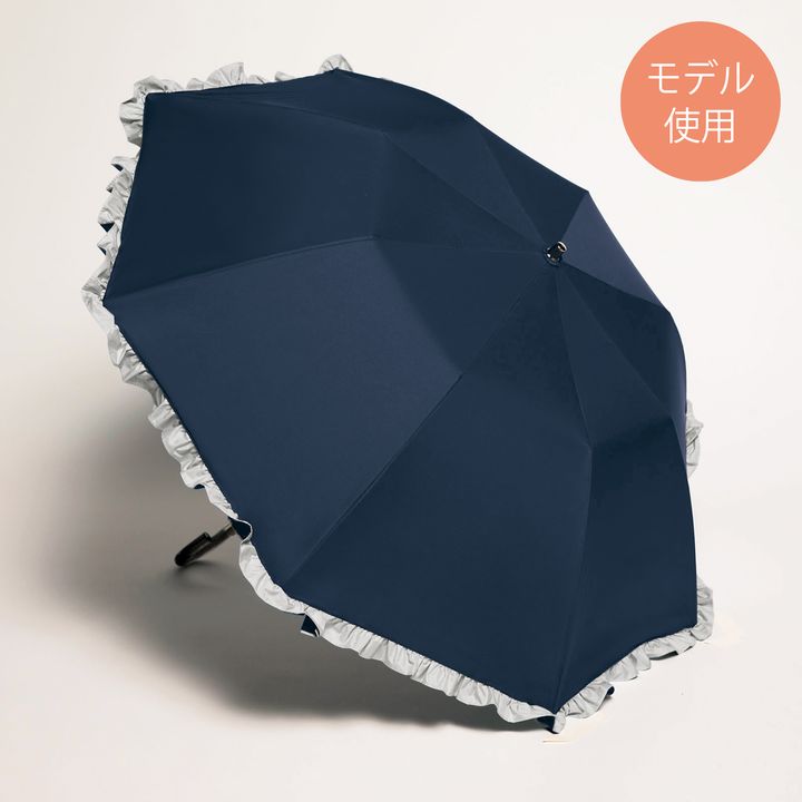 きちんと感が求められるシーンにも役立つデザイン&カラーリング。ブラックにはネイビー、ネイビーにはグレーのフリルが配されたバイカラーのノーブルなデザイン(内側は黒ラミネート)。