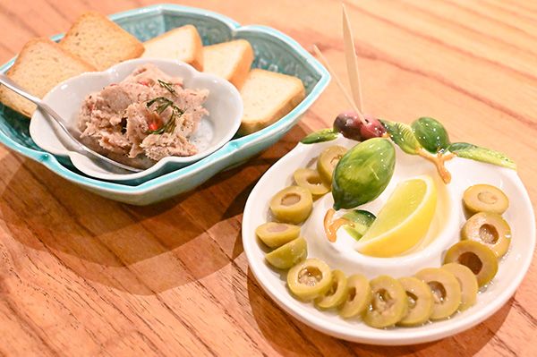オリーブの器、とってもオシャレですよね。 おつまみもどれも絶品、お酒とのマリアージュでゆっくり楽しめます。