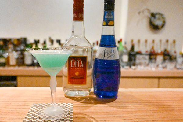 ブルーキュラソーにライチのリキュール「ディータ」を合わせたこのカクテル。甘さもスッキリ、見た目と同じ爽やかな味わいです。そして、なんといっても美しい!