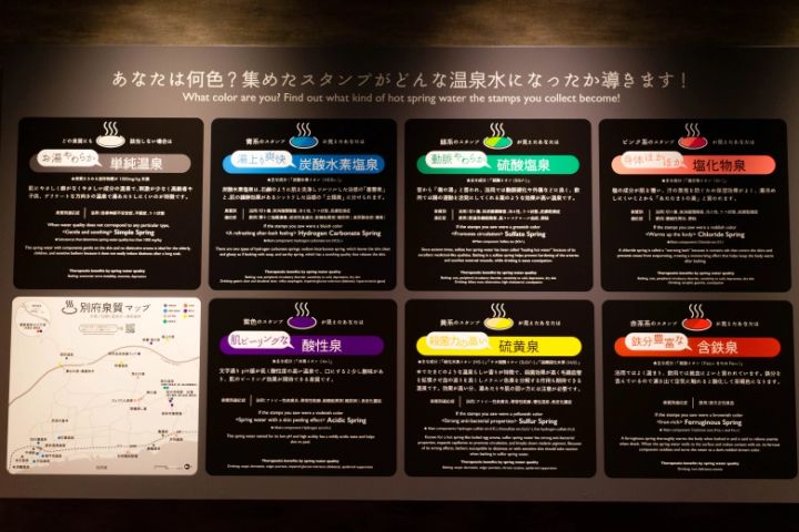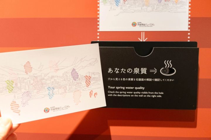 館内は4つのセクションに分かれていて、部屋を進んでいくと地中を再現した迷路のような空間が出現。迷路の途中には色や形の違うスタンプがたくさんあって、受付でもらったポストカードに押していきます。このスタンプは地中にあるイオンを再現していて、どのルートを通るかで押すことができるスタンプも変わり、それによって温泉の泉質が変わっていきます。別府に降る雨水のうち、温泉として湧き出るのはわずか16%。このミュージアムでは、 雨水が50年もの歳月をかけて温泉となるまでの過程を再現しています。