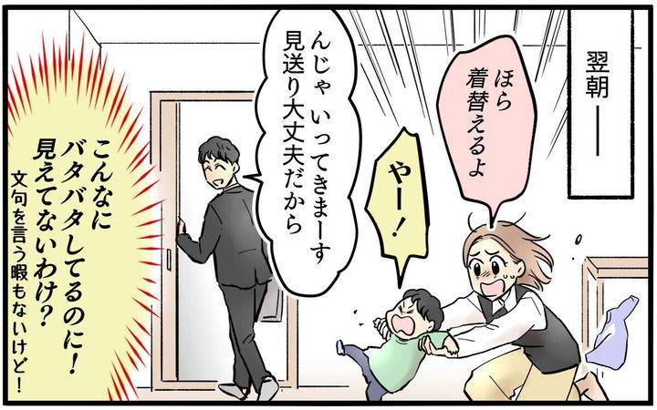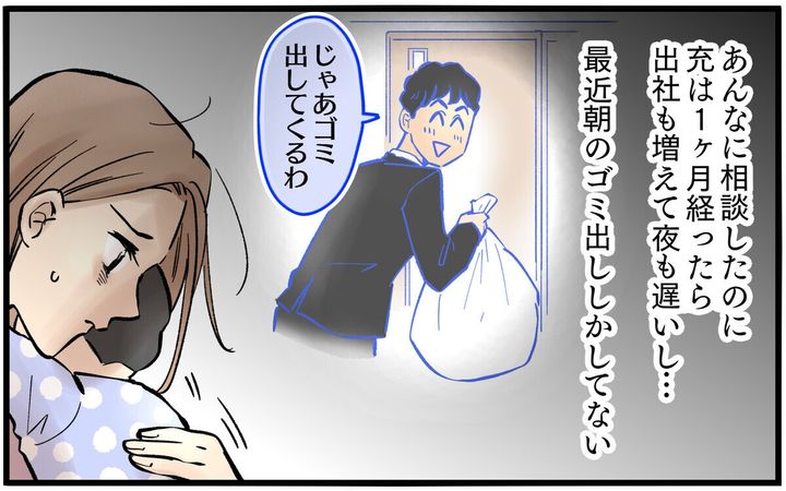育休明けからの復帰に、みんなに迷惑をかけないか心配な更紗。家事育児の分担を夫と話し合い、夫は「余裕」と豪語しておきながら充がやることと言えば朝のゴミ出し程度。家事も育児もほとんど更紗がやっていました。