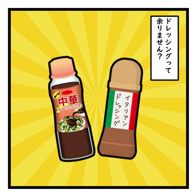 今回は我が家でよく使い切れないドレッシングをなんとかできないか頑張ってみました。