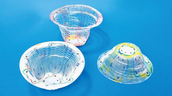 ファミリアのクマちゃんがプリントされた「空気の器」に絵を描いたりして、オリジナルでアレンジしよう♪細かい切り込みが入った円形の紙を広げて、さまざまなカタチになる「空気の器」は、小物入れなどインテリアとして使えます。
