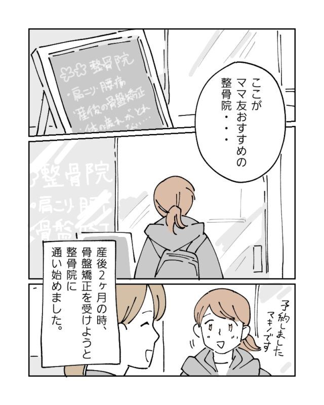 産後2ケ月の時、骨盤矯正を受けようと整骨院に通い始めました。