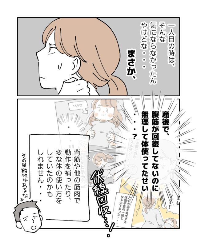 一人目の時は、そんな気にならなかったんやけどな・・まさか・・産後で腹筋が回復していないのに無理して体使ってたせい・・?