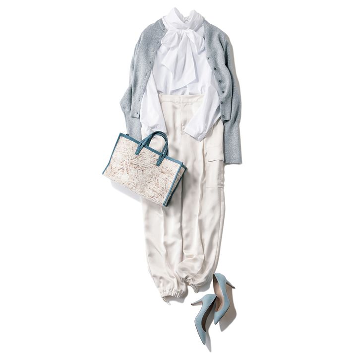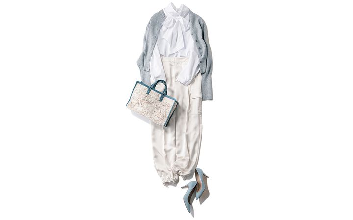 仕事後に大学の仲間と会うから、ベーシックカラーでも華やかに見える白の上下で出社。お気に入りコーデでるんるんだったのに、上司からの言葉に絶句…!新卒男子が言うには「応援がプレッシャーだった。自分のペースで進めたかった」って。あのコからすると私も許容できないモンスターなのか…。バッグ¥58,300(ア ヴァケーション)パンプス¥57,200(ネブローニ)