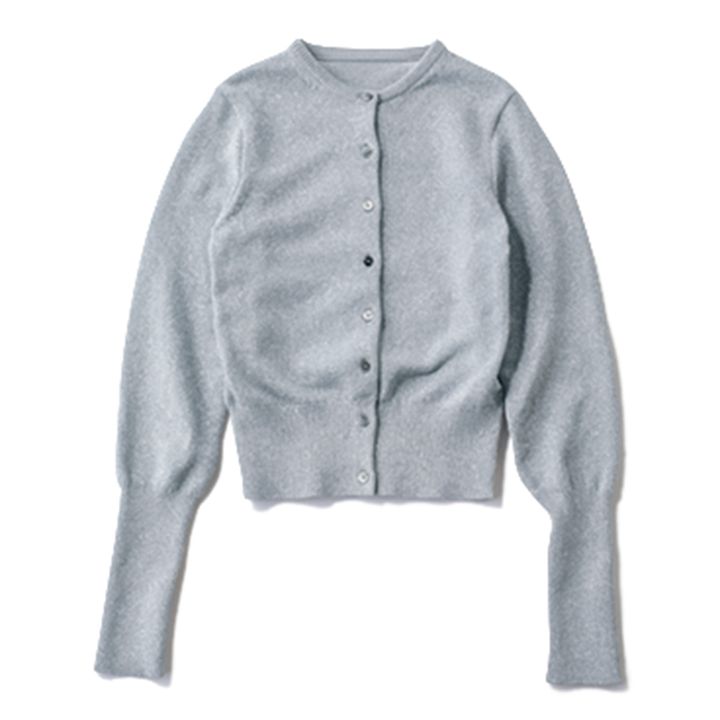 オフィスでも着られる繊細なラメ素材。トレンド感はもちろん、着ていて気分も上がる!カーディガン¥25,300(ウィム ガゼット/ウィム ガゼット ルミネ新宿店)