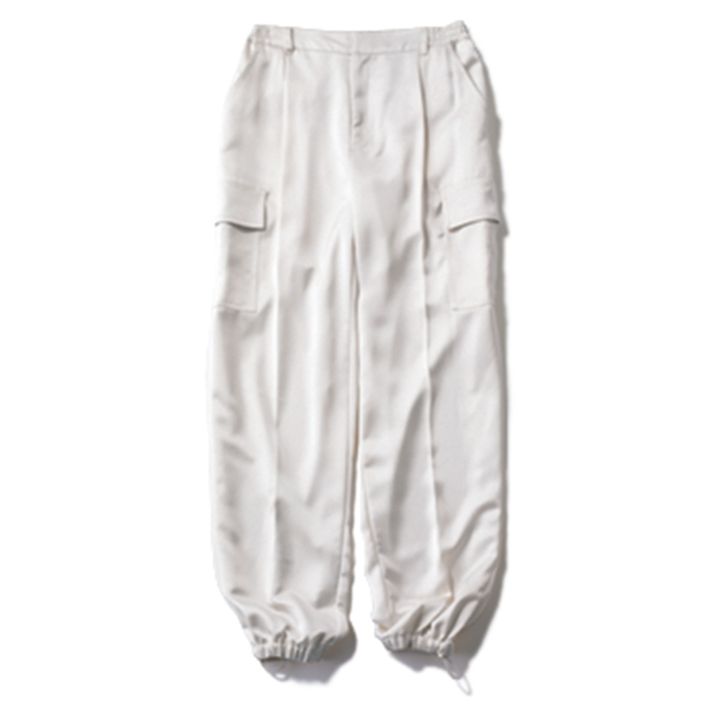 トレンドのスポーティ要素のちょい足しに、裾絞りのパラシュートパンツが活躍。パンツ¥19,800(ジャスグリッティー/ジャスグリッティー プレスルーム)