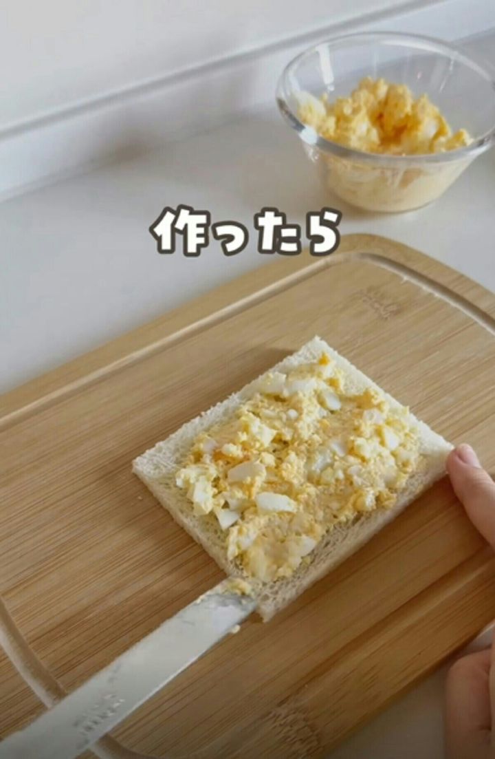 サンドイッチ用のパンを用意し、お好みの具材を挟んで通常通りサンドイッチを作ります。このとき、具材を入れすぎないように気を付けましょう。