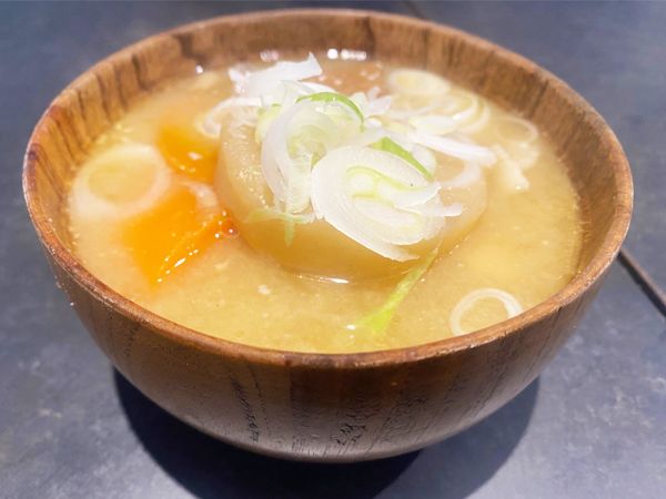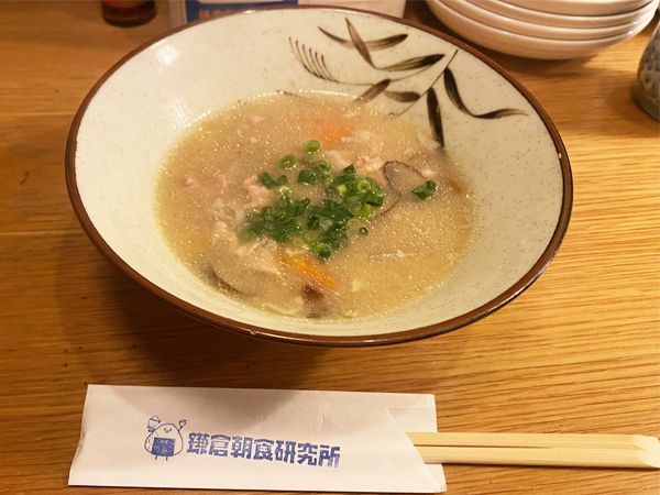 豚汁は、しっかり煮込まれたとろとろの口あたり。しっかり煮込んでも味わいある豚汁とは、さすがプロの技と思いました。具材は豚肉のほかニンジン、シメジ、ゴボウ、ダイコン。具材にもしっかり豚汁のうまみがしみ込んで、おかわりしたくなりました。
