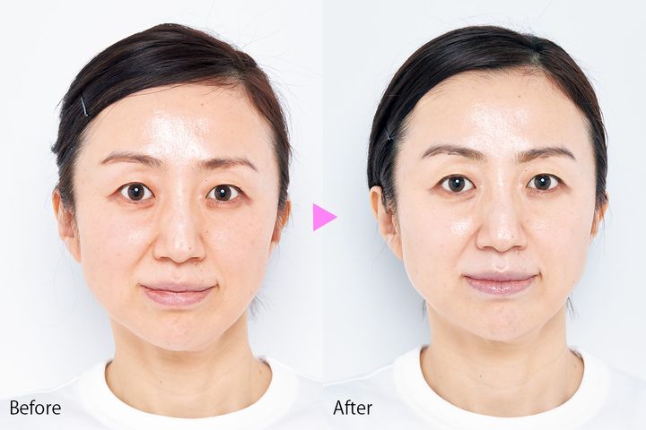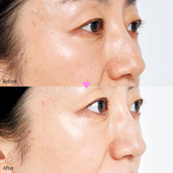 全体の赤みが薄まり、肌がさらに明るく変化。目の周りのくすみも薄くなり、透明感が増した。