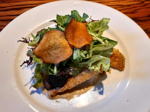 そしてブロッコリーは素揚げ、ごぼうはフリットにするなど、それぞれの野菜に違う調理法が施されていて、手が込んでいますね。。香ばしさやシャキッと感、ソースの酸っぱさの中に甘さなど、異なる食感と味がアクセントになり、「野菜だけ食べている」感じが全くしません。最後まで飽きずに食べられて、これはクセになりそう・・・!!