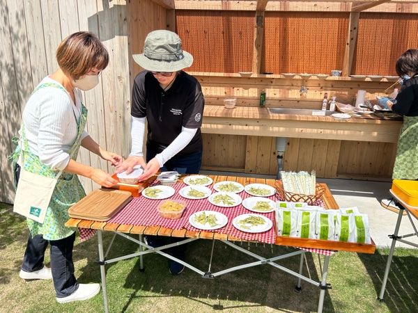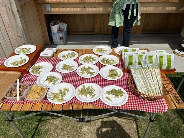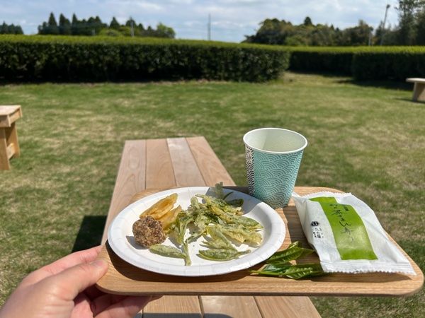 お外で頂くサクッと揚がった新芽の天ぷらと、坂之上製茶さんのお茶を使って作られたお菓子をおいしいお茶でいただける幸せ最高なひと時を楽しみました。