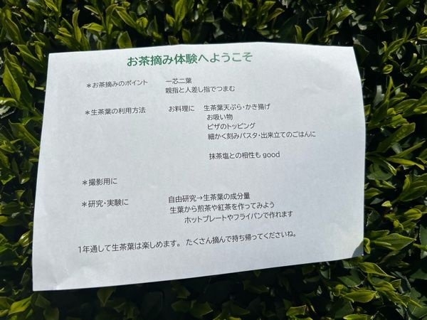 お茶摘みのポイントを教えていただいて