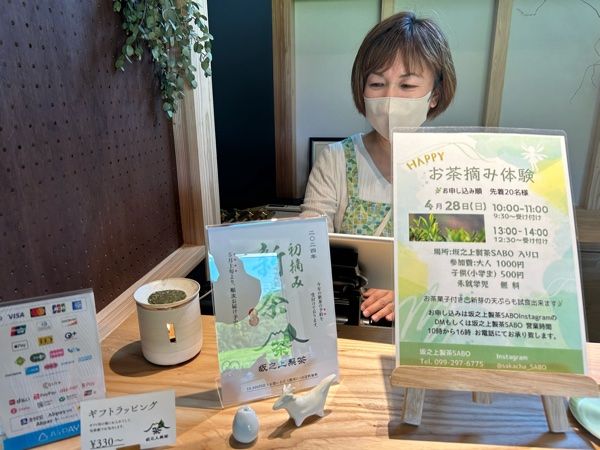 4月28日も先着受付で楽しめるそうです。お問い合わせくださいね。 この季節にしか楽しめない貴重な楽しいお茶摘み体験。皆さんもぜひ緑に癒されに足をお運びくださいませ。自宅から20分の坂之上製茶さん。今度はオープンされたばかりのSABOのご紹介させていただきます。