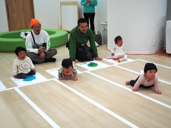 式典後は館内見学に加えて、限定イベントも。 屋内では、一般参加を募った「TeToTeはいはいレース」を開催。全長3メートルの直線コースをはいはいで進む、順位なし・賞状プレゼントのかわいいチャレンジ。1レースは2分間、泣く子笑う子さまざまで愛らしい姿に観衆はほっこり。