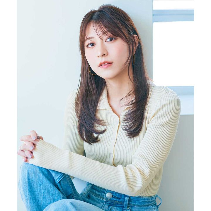 「山本美月ちゃんのような、存在感のある〝サイドバング〟が最旬トレンド。幅広めにサイドバングを作り、顔周りに動きをつけると印象が変わって可愛いですよ!姫カットのようにぶつ切りにせず、レイヤーを入れて自然に作り込んで。前髪はやや厚めにするのがイチオシ」(TIECHEL代表・青木さん)