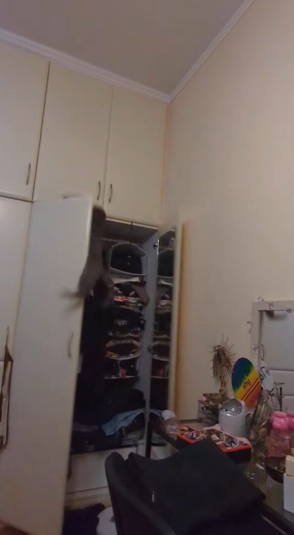 結局、クローゼットから落ちてしまうのでした。 見事なジャンプを披露し、途中まで順調だっただけに、残念な結末になってしまいましたね。