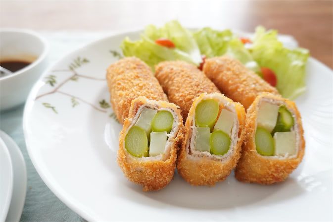 春野菜のおいしさを口いっぱいに味わえる「アスパラとジャガイモの巻きカツ」。みなさんもぜひ作ってみてくださいね!