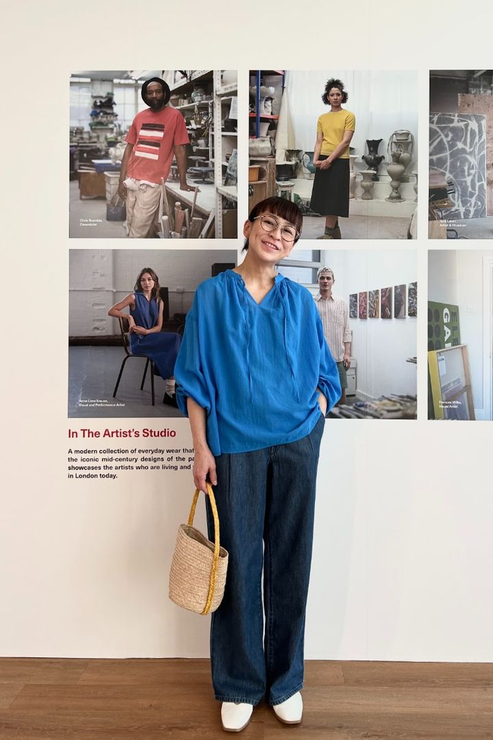 身長165㎝、コットンシアーボリュームブラウス¥2,990[WOMEN:サイズM]/ユニクロ アンド ジェイ ダブリュー アンダーソン、ドレープデニムタックパンツ(丈標準72~74cm)¥3,990[WOMEN:サイズM]/ユニクロ、その他/佐藤さん私物
