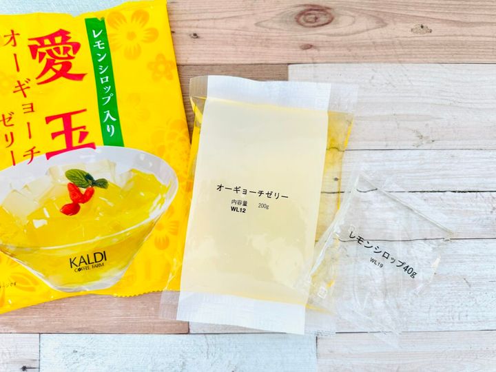 オーギョーチとはイチジクの仲間の植物だそう。原料の果物は知らなくても、オーギョーチゼリーのファンは多いはず。ゼリー本体とレモンシロップが入っているので、食べる前によく冷やしておきましょう。