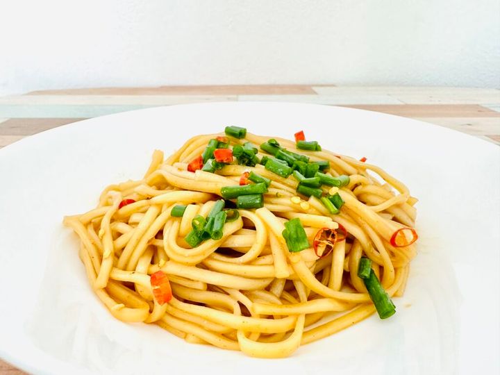 麺は6分ゆでてから水でよく洗って、調味油、粉末スープの順に混ぜるだけで出来上がりです。ほぼ透明の調味油に花椒の豊かな香りがします。