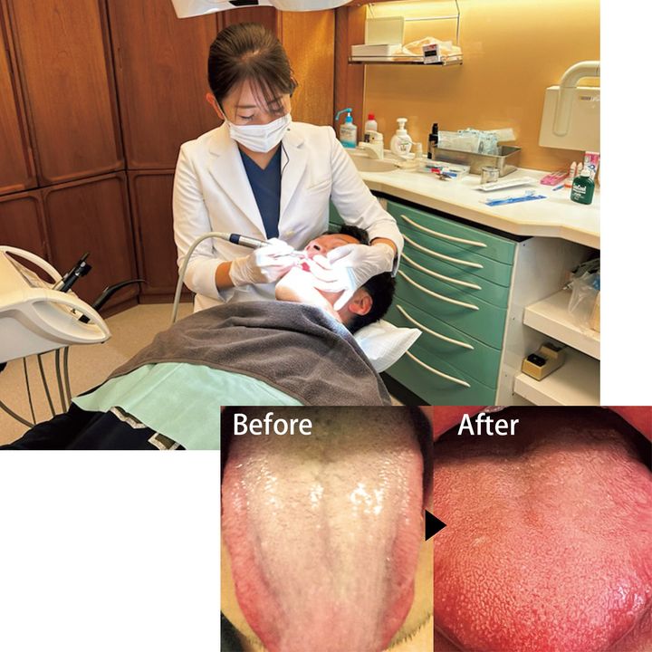 「原因は磨き残しと舌苔の堆積による口臭です。ご自宅でもしっかりケアをして下さい」と今回施術してくれた福井陽子先生。