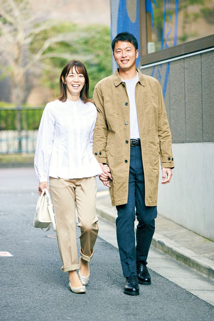 「シックな色のコートで大人っぽく。Tシャツをセンタープレスのパンツにインして、黒のベルトで締めることで足長効果もプラス。高級感のある紐付き革靴で上品さを強調しました」(中村さん)