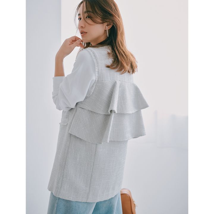 Emma Taylor バックラッフルツイードジレ ライトグレー、チャコールグレー ¥14,300